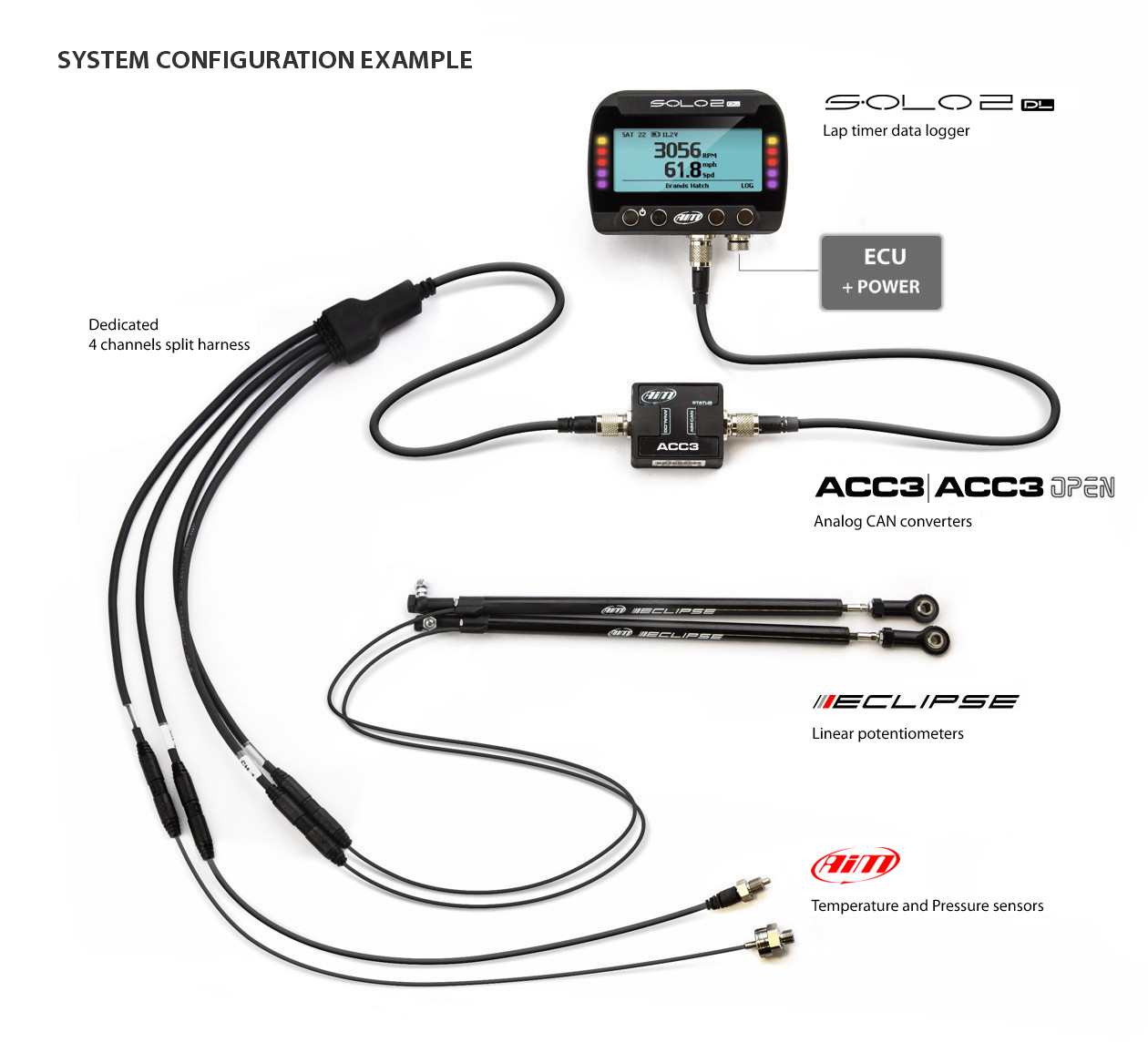 | ACC3 and ACC3 Open can be connected to Eclipse sensors. All the acquired data by AiM linear potentiometers can be managed through the new Suspension Analysis Tool in RaceStudio 3, for an even more complete performance analysis software.