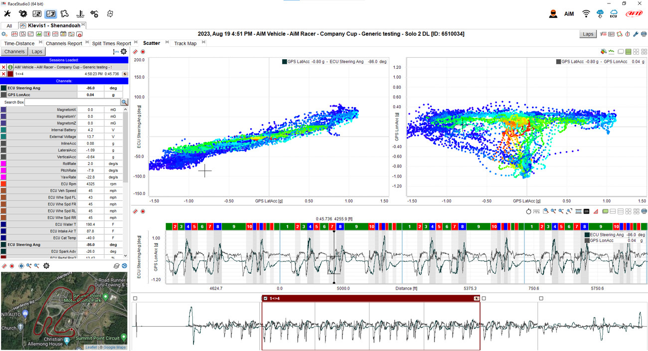 | Now thanks to the powerful RS3 Analysis tool it is possible to analyze in depth every aspect of the driving session. Based on the data coming from your ECU and expansions, it is possible to figure out corrections, dynamics of the vehicle, driving setting, criticalities, fault and much more.