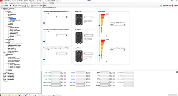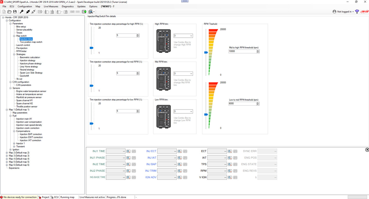 Taipan ECUs can manage up to five maps that can be selected both by OEM switches (Honda, Husqvarna, KTM) or even more easily by the Handle Bar Switch 2.