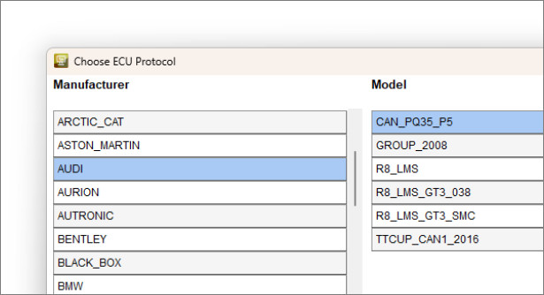 MXm and MXq manage CAN, K-Line and RS232 ECU communication lines and its huge database includes more than 2,000 ECU protocols. |