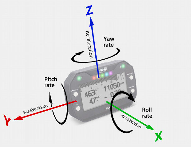 | 3D accelerations and gyro - the inertial platform at 100 Hz - gives the possibility to calculate roll, pitch and yaw. |