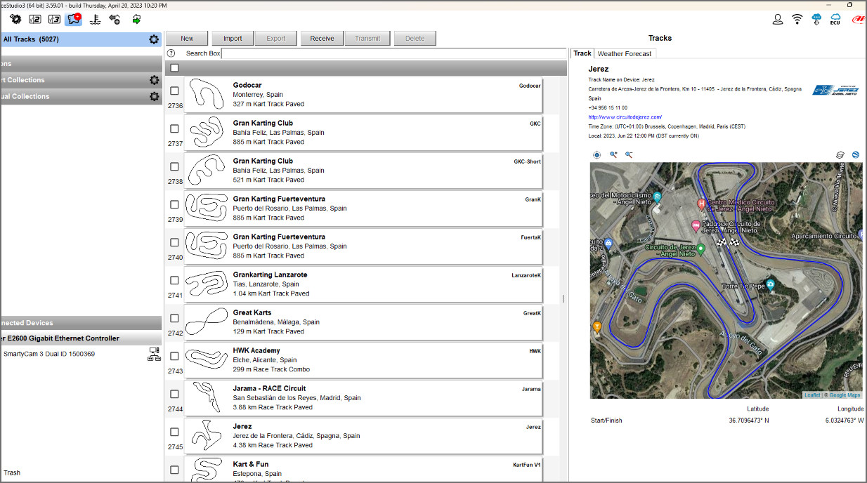 With more than 4,000 tracks in database, the integrated GPS recognizes the track you are racing on and automatically starts sampling lap times. Thanks to Track Manager function of RaceStudio 3, tracks can be created, deleted and modified, transmitted and received to/from MXm/MXq. |