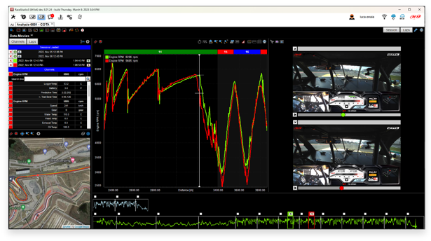 In RaceStudio 3 you can also analyze all data recorded by MXm and MXq and downloaded to your PC. Graphs, histograms and tables will help you studying your performance, providing an objective support to avoid mistakes and improve your performance as well as tuning the engine and adjust the setup of your vehicle. You will also be able to manage the map of all your racing tracks and compare two laps watching the video recorded by SmartyCam 3 cameras. |