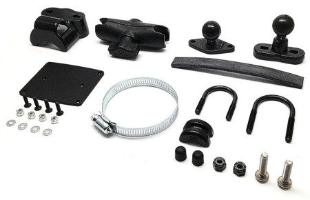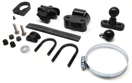 | In the box: U-bolt, 90 mm arm, clamp base with ball, mounting bracket, locknuts, washers and screws |