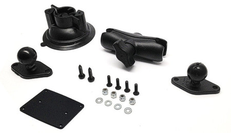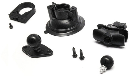 | In the box: suction cup, 90 mm arm, clamp base with ball, mounting bracket, locknuts, washers and screws |
