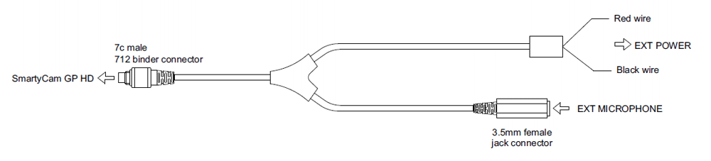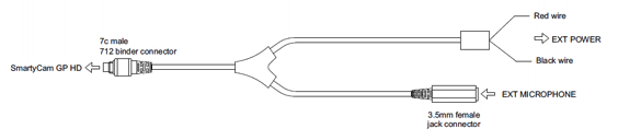 External power + Integrated 3.5 female Jack for external microphone harness -